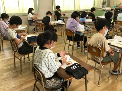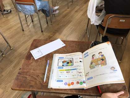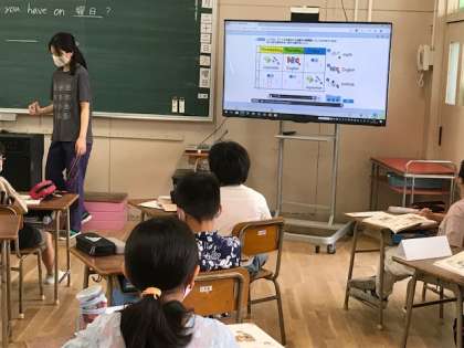 you have on〜?」に教科名で答えます。デジタル教科書から聞こえてくる英語をしっかり聞き取れるいい耳が育っています。