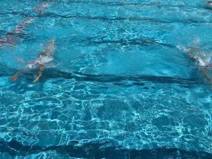 3年生、4年生は、水なれのあとけのび、ふしうきをします。2年ぶりのプールは気持ちいいそうです。