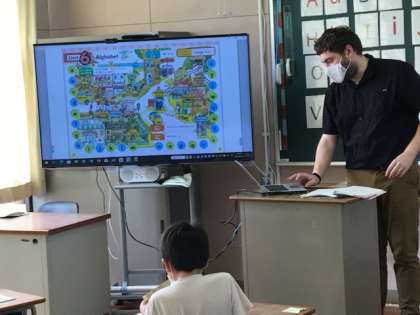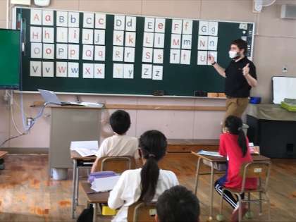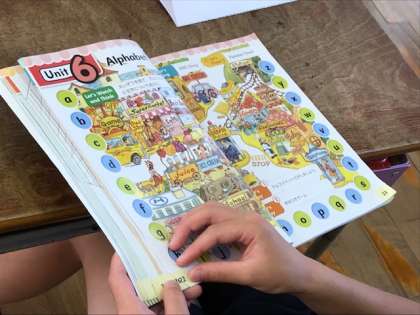 4年生の外国語活動の時間です。「alphabet」を歌いながら、音声と文字を合わせていきます。上手に歌えていますね。