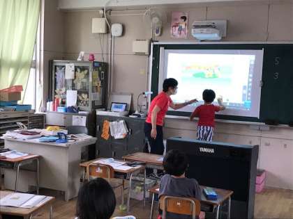 1年生が算数科の時間に「ひきざん」の導入を学習していました。「ちがいはいくつ?」を見つけるのは難しいですが、見つけた子が前に出て説明していました。