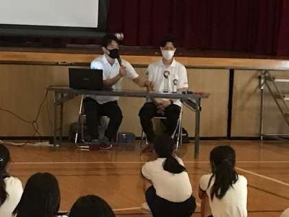 >  来てくださったのは「Fat man crew」チームです。世界大会のメダルを見せていただき、パフォーマンスの映像も見せていただきました。