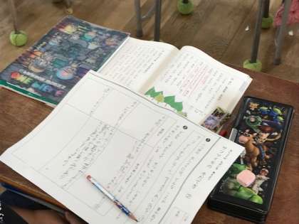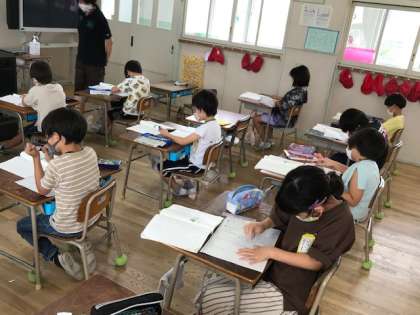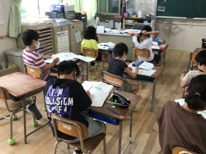2年生が国語科の時間に、「サツマイモの育て方」が書かれた説明文の読み取りをしていました。本文をよく読んで、ワークシートにまとめていきます。読み取る力が付きますね。