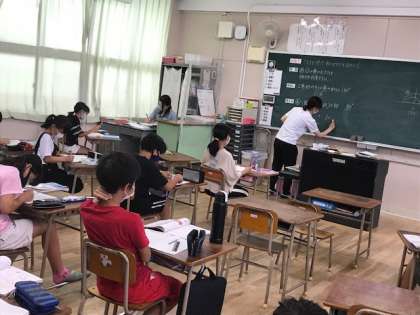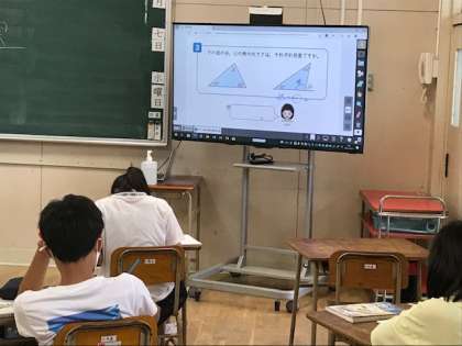 5年生が算数科で「図形の内角と外角」の学習をしていました。図形の性格を考える上で大切な学びです。三角形の内角の和が180度であることさえ覚えておけば大丈夫ですね。
