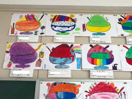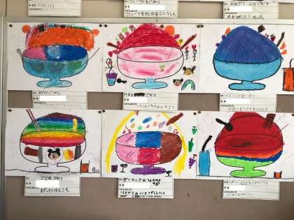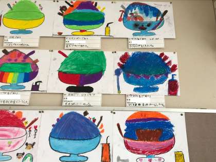 2年生がとてもおいしそうなかき氷を作っていました。どのかき氷も、器がかわいくてシロップがとってもおいしそうです。
