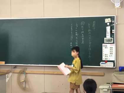 4年生が学級活動の時間に「折り紙の使い方」について話し合っていました。休み時間にどう扱うかについての話し合いです。学校生活の中で大切な議題ですね。