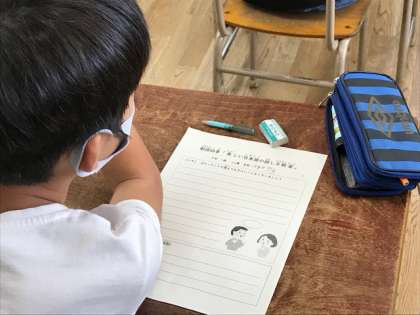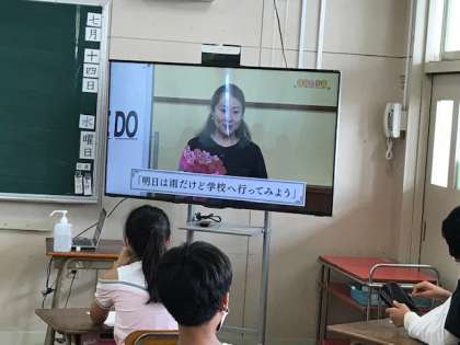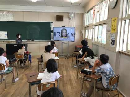5年生が総合的な学習の時間に劇団四季による「美しい日本語講座」の動画を見て、発音の学習をしていました。母音を大切にして話すといいそうです。みんなで声をそろえて練習していました。来年なら、劇団四季の方に来ていただけたのですが残念です。