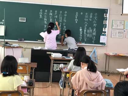 6年生は、国語科の時間に辞典で調べながら漢字に挑戦していました。学習済みではあるものの、同音の漢字があるので正しく書くのが難しいです。
