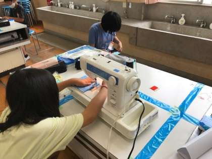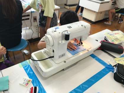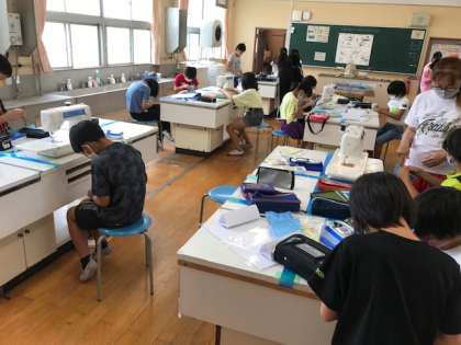 ミシンを使って製作に励んでいるのは5年生です。小さな袋を懸命に縫っていました。かわいいウサギにしている子もいました。