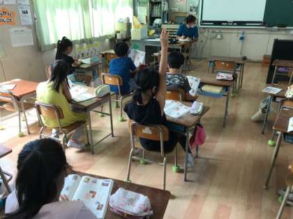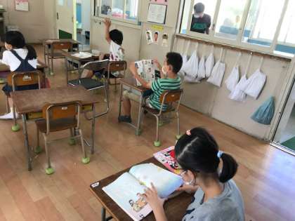 3年生は、国語の教科書に紹介されている本の中でどれを読みたいか考えていました。後で図書室に行って借りるようです。夏休みにたくさん本を読んでほしいです。