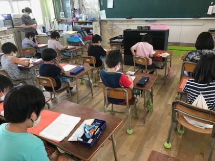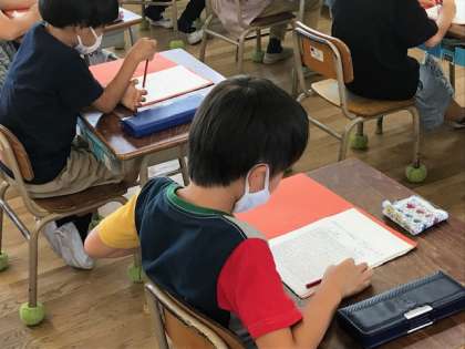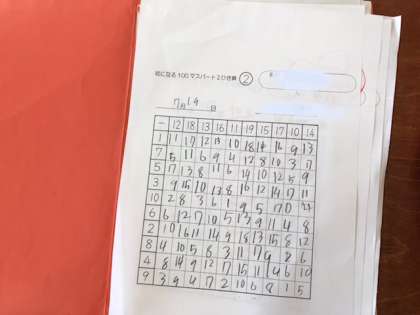 2年生は、百マス計算に挑戦していました。縦横を確認しながら計算するのは、視覚の動きも大切です。どの子もとてもよくできていました。