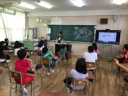 5年生は、始業式が始まるまでの時間に、夏休みの暮らしぶりや宿題の様子などを確認していました。