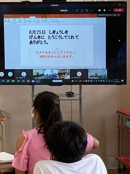 2学期の始業式は、緊急事態宣言中ということもありオンラインで行いました。子ども達は、教室で静かに参加しました。校長先生から、感謝についてのお話と新型コロナウィルス感染症予防についてのお話を聞きました。
