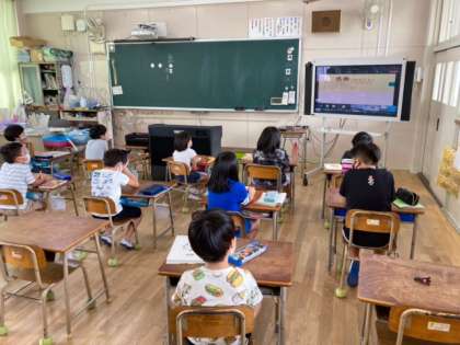 生活指導の松原先生からは、挨拶や廊下階段の歩き方などのお話がありました。よいお知らせは、児童絵画作品展で受賞した子ども達をみんなに紹介してもらったことです。