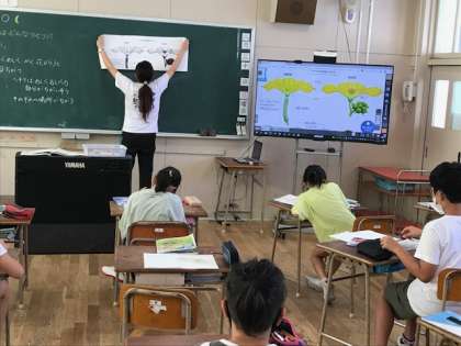 5年生の理科では、ヘチマの雄花と雌花の違いを学んでいました。植物によって花のつくりが異なるということに気づいていました。