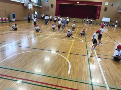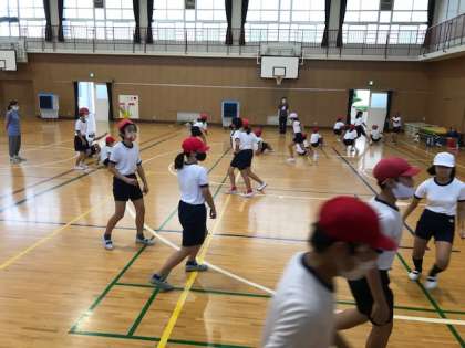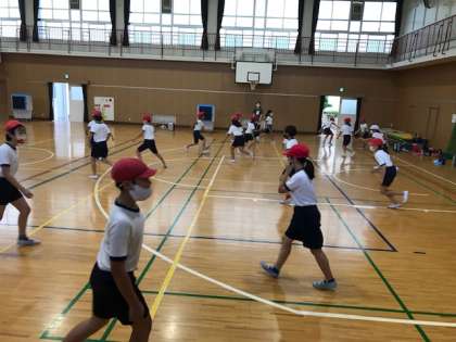 5.6年生の練習は早くも隊形移動をしていました。表現の方法の一つですね。団体ならではのあり方です。