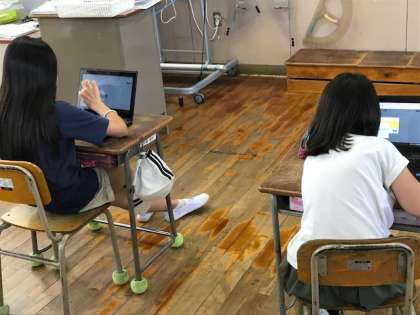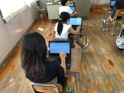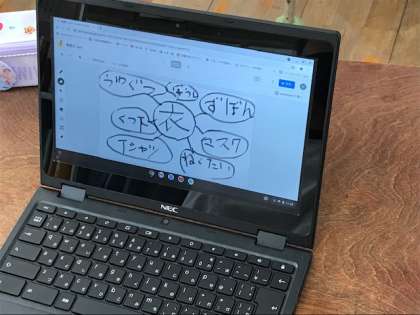 4年生が国語科の説明文の学習にICTを活用しています。jam boardというアプリを使って、「くらしの中の和と洋」の衣食について書き込んでいました。