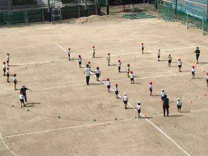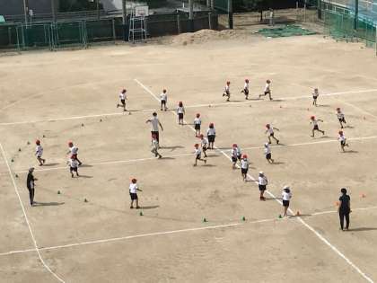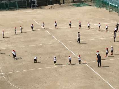 1.2年生が運動場でダンスの隊形移動の練習をしていました。先生のカウントに合わせて移動するのですが、すぐに移動先を覚えて並び直せていました。すごいことですね。