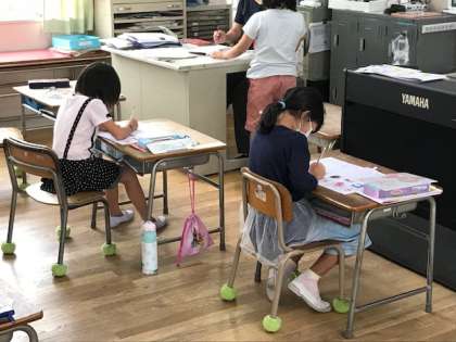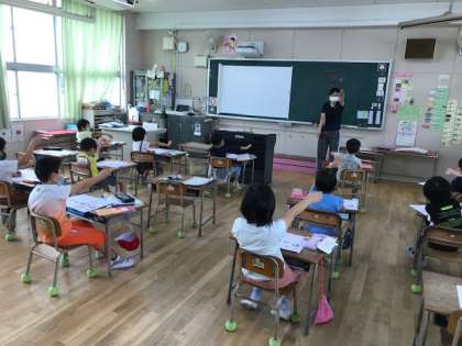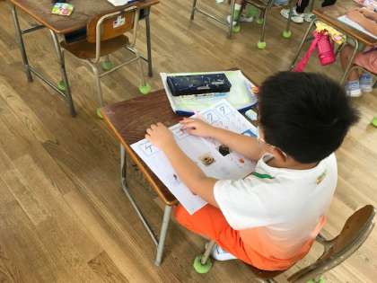 1年生は、国語科の時間にカタカナの学習をしていました。書き順を覚えて、指で書いて、空がきをして、形に気をつけてノートに書きます。とてもたくさんのことをきちんとできるようになりました。