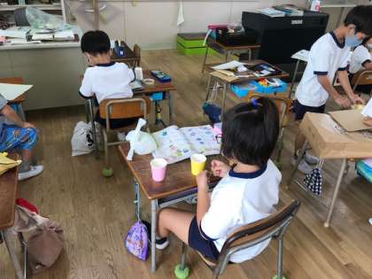 2年生が生活科の学習で、「動くおもちゃ」を作っていました。持ってきた素材を使い、どんなおもちゃができるのか。楽しみですね。
