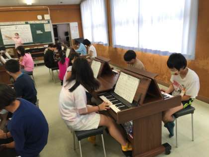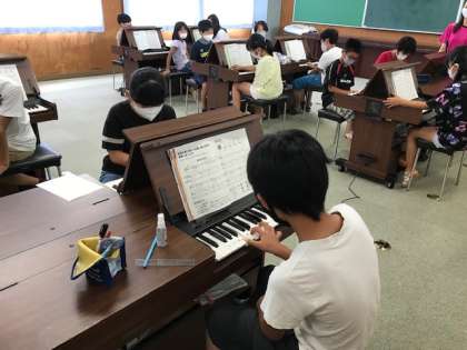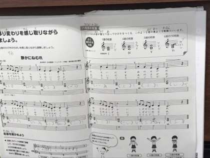 6年生は音楽科でフォスター作曲「静かに眠れ」の伴奏を和音で弾いていました。ドミソ、ドファラ、シレソを間違わないように頑張っていました。