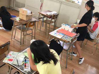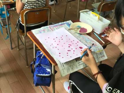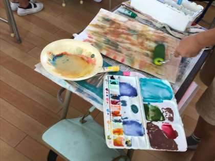 6年生の図画工作科の時間には、芸術家がいっぱい誕生していました。数枚の画用紙に思い思いの表現をして、ここからまだ完成に向けるそうです。
