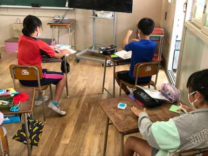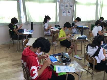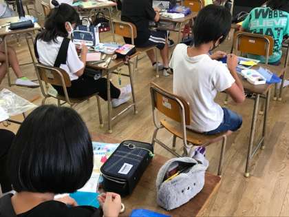 5年生家庭科の小物作りです。一針一針ていねいに縫い進めていました。だんだん形になってきています。