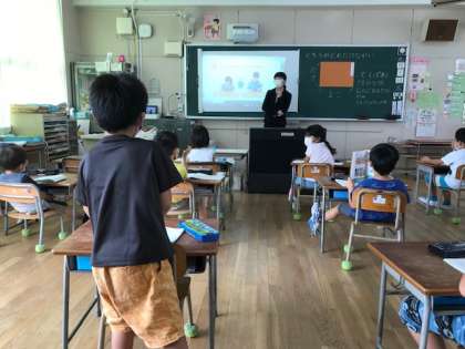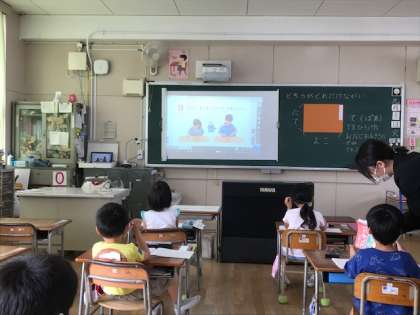 手と手を広げて測る。指で測る。などいろいろな考えが出ました。教科書を確認して考えている子もいます。