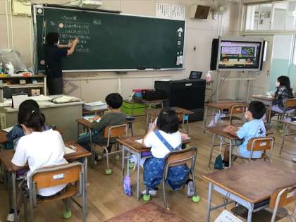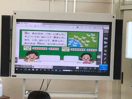 2年生の算数科の時間です。今までは、A?Bの計算だったのが、A?B?Cの計算です。問題文から予測するのが難しいですね。