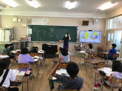 5年生の社会科では、日本の輸出入に関する学習です。農作物では、1960年と2017年では大きな変化があることに気づいていました。日本は輸入に頼ることが多いようです。