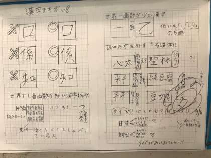 5年生の教室に掲示されていた自学ノートです。世界一画数の多い漢字は172画あるそうです。何と読むのでしょう?