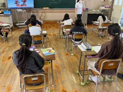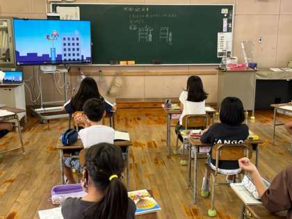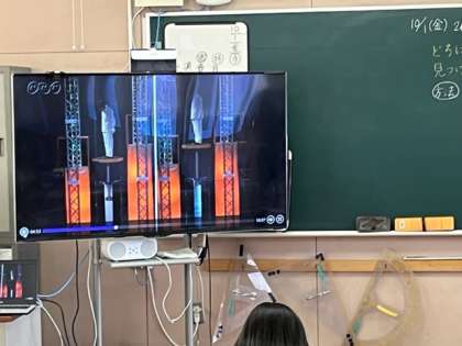 空気でっぽうや水でっぽうを使った実験を通して、4年生の子どもたちは、「空気は縮むけど水は縮まない」ことを見つけました。今日はその応用の問題です。疑問を出しながらよく考えていました。