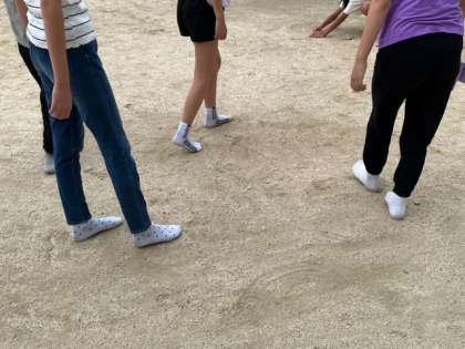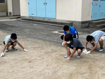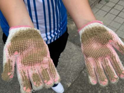 6年生の家庭科の時間です。洗濯の実習をするためにわざと靴下や手袋を汚していました。きれいになるのかな?