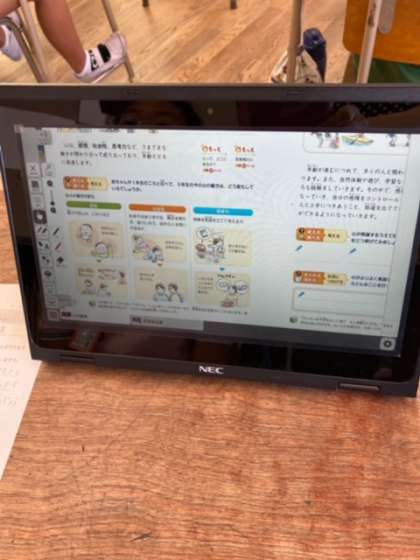 本日は、5年生ご保健のデジタル教科書を使った学習をしていました。デジタル教科書の検証校になったので、他の学校より早く使っています。これからはこのような光景が増えるのでしょう。