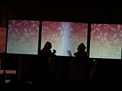 白黒だけでなく色彩豊かな「かげ」や、手や指で表現する「かげ」に子どもたちは大喜びです。