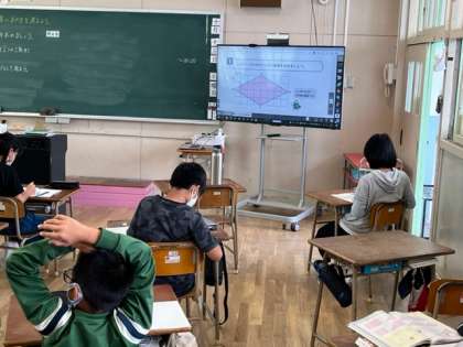 ひし形の面積の公式は、「対角線かける対角線わる2」ですが、その公式を見つける学習です。三角形にしたり、四角形にしたりしながら面積を求めていました。
