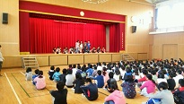 4月24日(金)の児童集会では各委員会の委員長、学級代表、議長、副議長がこれから1年間の目標を全校児童の前で発表しました。