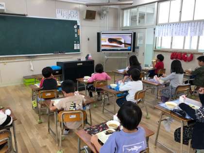 今日の給食にはさんまが出ました。食べ方の動画を栄養教諭の先生が作ってくださいました。子どもたちは、動画を見ておはしでさんまをきれいに食べるようにがんばっていました。6年生はとてもきれいに食べることができたそうです。