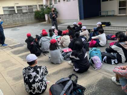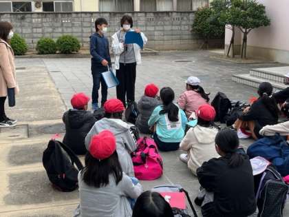 今日から待ちに待った修学旅行に出発です。全員元気に集合しました。天気にも恵まれて、出発式も時間より少し早く始められました。