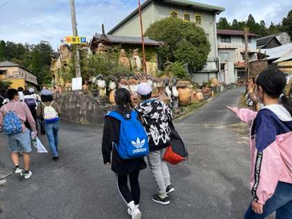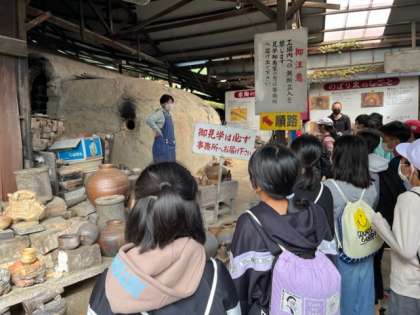 予定通りに宗陶園に着きました。初めに江戸時代から使われていると言う登り窯を見学しました。日本一と大きさだそうです。