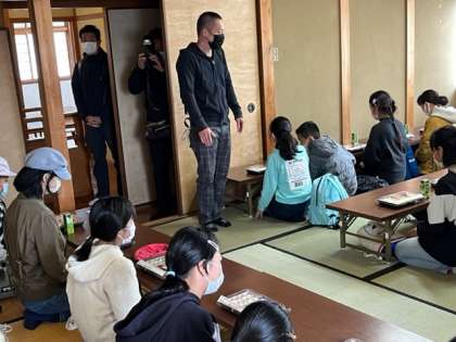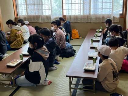お昼ご飯は宗陶園の立派な建物の2階でいただきます。誰一人、一言もしゃべらずにいただいています。流石の子どもたちです。