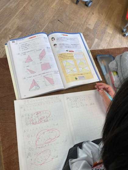 テストに向けて、復習をしています。解けるまでチャレンジしています。