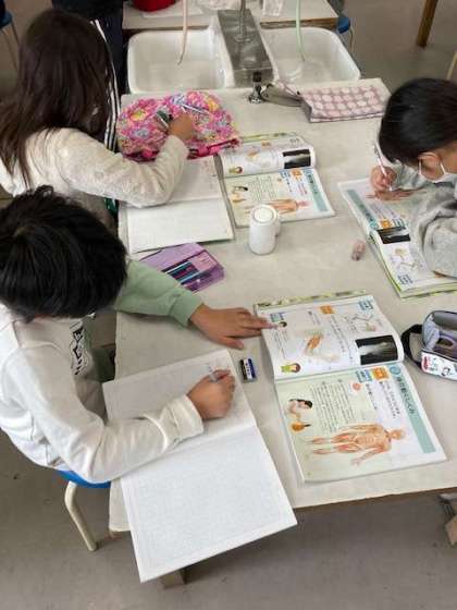「体の動くしくみはどうなっているのか」を考えグループで話し合いました。