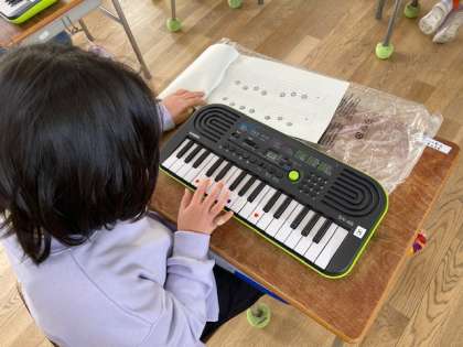 ミニ電子オルガンで「こいぬのマーチ」を練習しています。