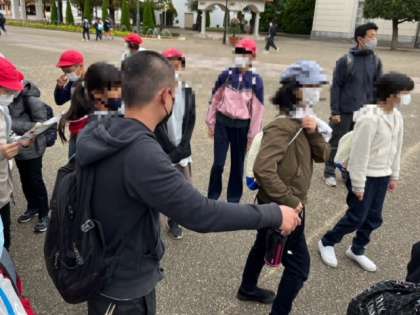 志摩スペイン村に到着しました。今朝はたくさん学校が来ています。記念撮影をしたら早速自由行動です。