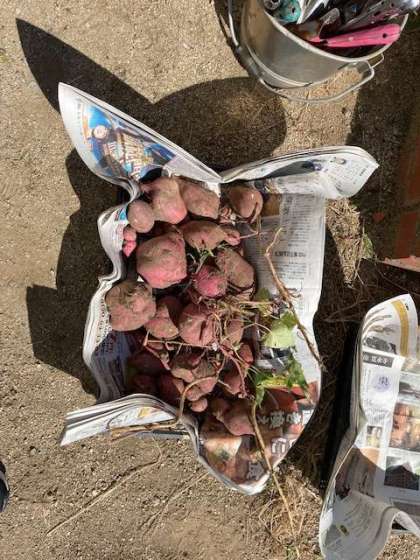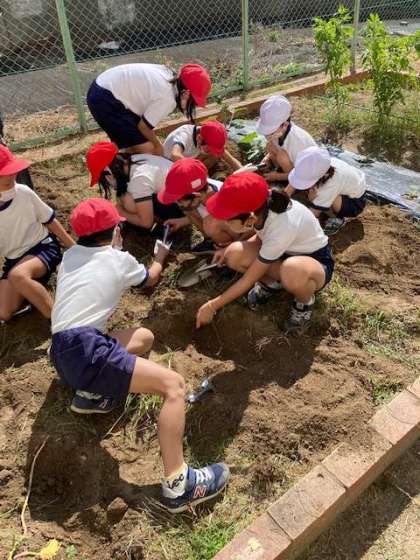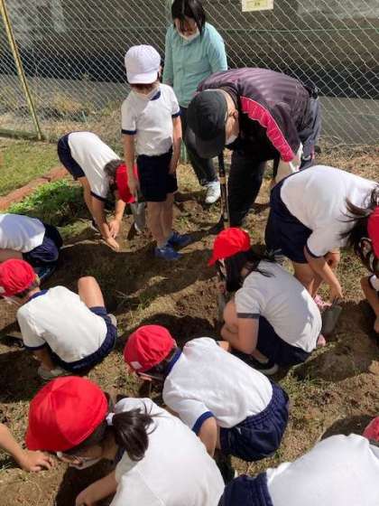 みんなで育ててきたサツマイモ。収穫の日を迎えました。立派なおいもが収穫できました!