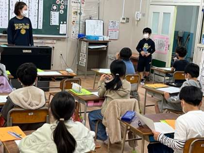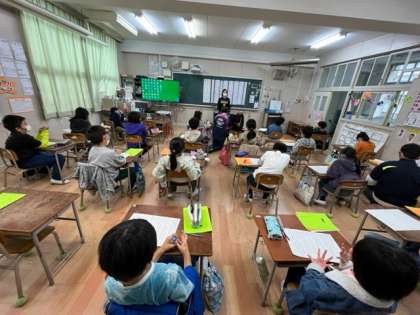 3年生が国語科の学習「ありの行列」をしていました。音読をして、今日のめあてを確認します。ワークシートに書き込みながら進めていました。