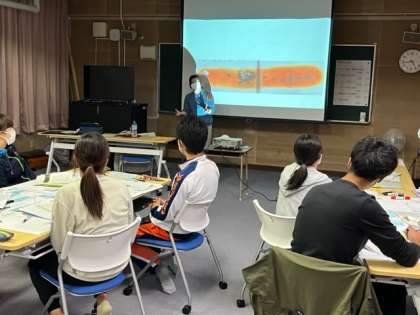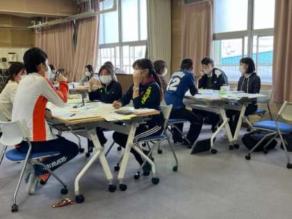 子どもたちが研究授業で頑張って学習したあとは、教員も研究会でしっかり学びます。大学の教授にもお越しいただき、国語の指導法について2時間勉強しました。