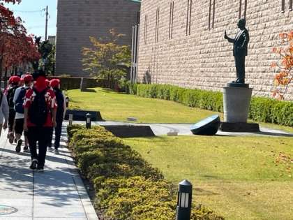 池田のカップヌードル記念館にきました。安藤百福の銅像とひよこちゃんに迎えられました。