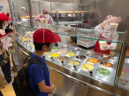 カップに絵を描いた後は、麺を入れて好きな味と具材を入れてもらいます。シーフード味が人気のようです。