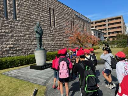 最後に安藤百福の動画を見て、銅像にお別れを言って帰ります。